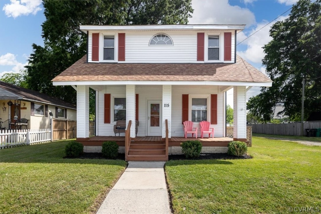 Sold Helping you find home in this charming area of Colonial Heights! This 3 bedroom, 1.5 bathroom home sits on a spacious lot and offers off-street parking along with a 1-car oversized detached garage and storage shed. A rare find in Colonial Heights. Centrally located and convenient to shopping, great restaurants, highways and Fort Gregg-Adams, this home offers an updated interior to include LVP flooring throughout the first floor, fresh paint in neutral colors, updated white kitchen with newer appliances, new plumbing, newer roof, newer siding, and so much more! Downstairs you will enter the home into a living room with a fireplace (non-functional), a flex space to your right and a formal dining room that leads you into the kitchen. Off the kitchen is a mud room that connects with a separate laundry room. You will also find an updated 1/2 bath downstairs for your guests to utilize. Upstairs is the full bathroom that is updated and spacious. All 3 bedrooms are also located upstairs and one of them has a walk-in closet! Out back is a beautiful deck and fenced yard complete with a storage shed and 1 car detached garage. This charming home won’t last long at this price point so get your private tour scheduled today.