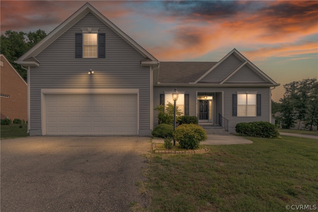 Welcome home to the heart of Chester! This split ranch style home has the perfect floor plan for entertaining and living. Entering the home, you are greeted by a large foyer that is open to the living room and formal dining area. This room boasts a vaulted ceiling and open concept that can’t be beat. Fresh paint throughout the home makes it feel brand new again. The kitchen is semi-open to the living room and eat-in area, separated by additional seating at the bar. Stainless steel appliances and Granite countertops complete this functional kitchen. The bedrooms are “split” with the primary on the left side of the home and the additional rooms on the right. The primary bedroom has a walk-in-closet and a newly renovated primary 5-piece bathroom that is stunning. The free standing tub next to the tiled, oversized shower is a show stopper. This home also has a 4th bedroom over the garage that makes for the perfect additional, separate space. The home is situated on a corner lot that is convenient to Fort Lee, interstates and shopping.Come check it out today!